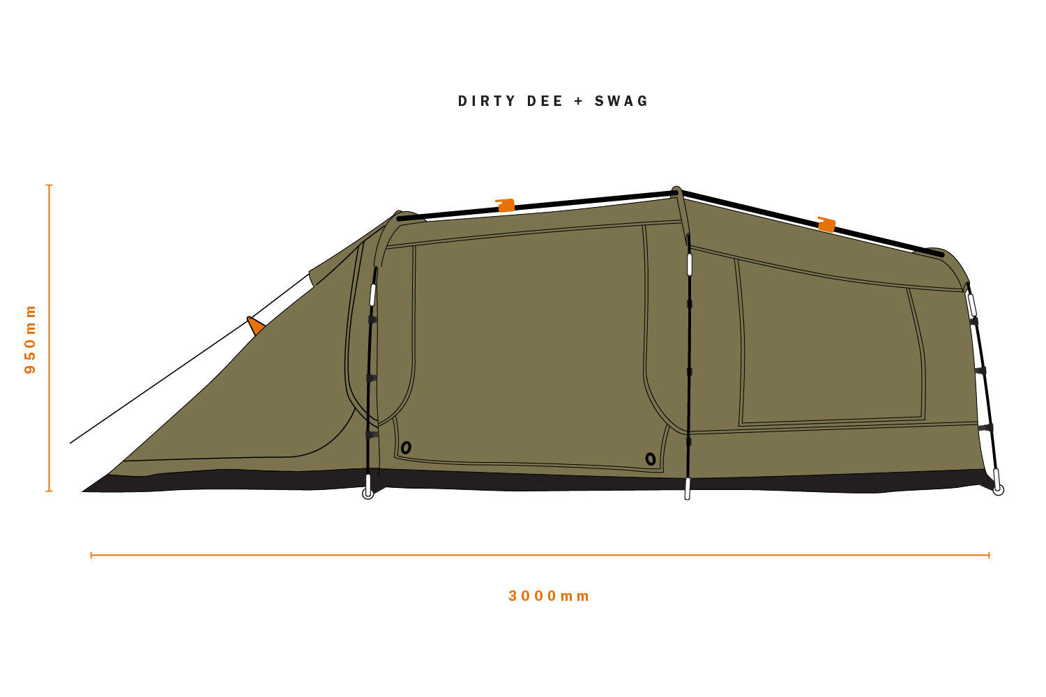 With all of your favourite Dirty Dee features, the Dirty Dee Plus + swag packs a punch. The attached Hutch® compartment gives you a heap more room to store your gear. With two external access doors plus the convenient ‘in swag’ access panel through to the Hutch®, you can keep your gear dry and access it from inside or outside of the swag. Store your gear bag or your muddy boots away from your sleeping quarters, keep the beer and fire wood dry or even let the dog bunk in!