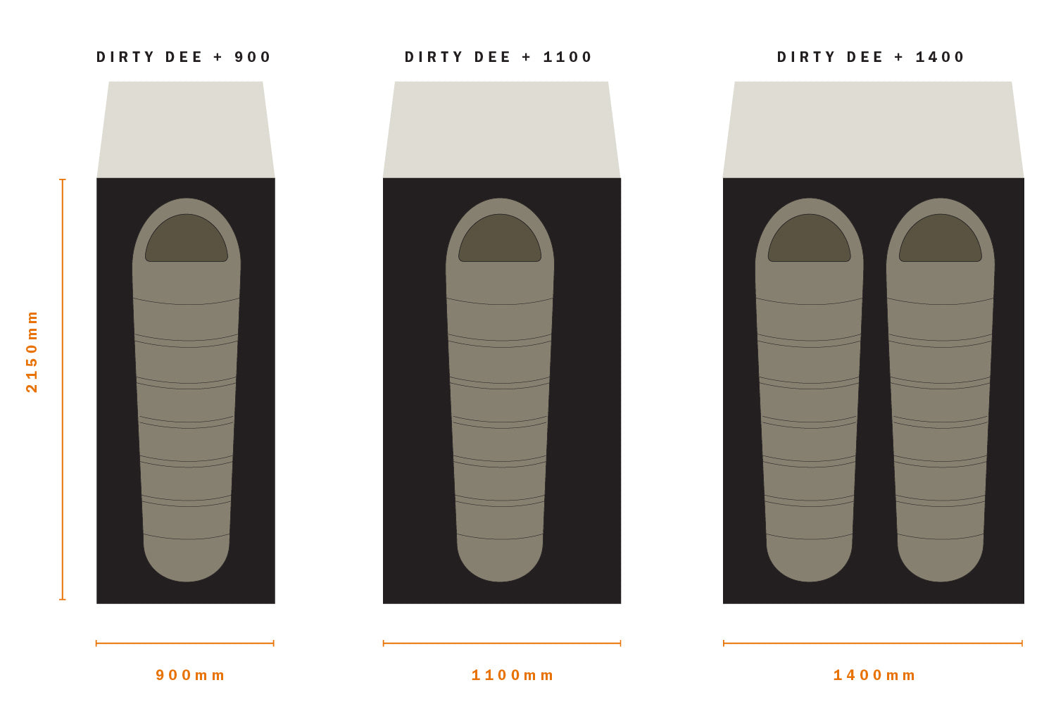 The DARCHE Dirty Dee Plus+ Swag including built in Hutch® is available in 3 sizes: 900, 1100 and 1400.