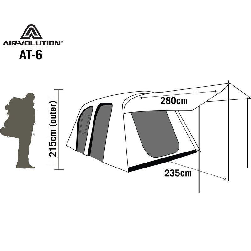 The Air-Volution™ tents have been wind tested by Monash University, so we know they’re tough. The AT-6 body, fly and awning are made from tough 210D ripstop polyester oxford. This tent has an impressive PU 1500mm water rating and seam sealing that will keep you dry in extended rainy conditions, giving you great protection from the elements all year round.