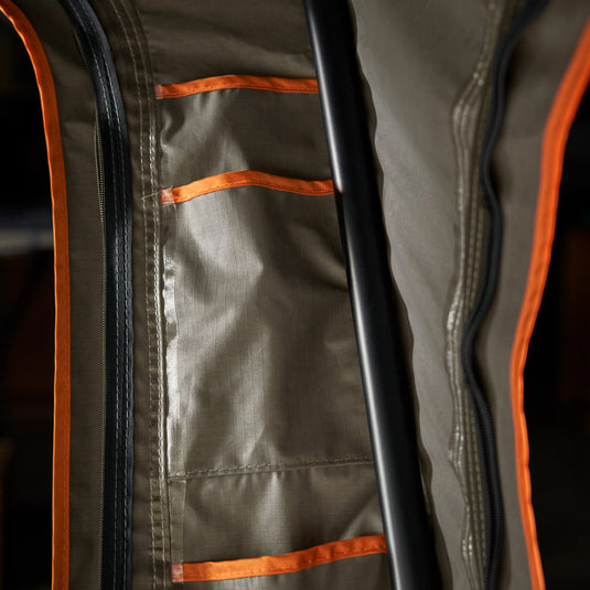 The Ridgeback body tent is made from premium 280gsm Ripstop Polycotton Canvas. This tent has an impressive 3000mm water rating, high profile automotive rubber weather seals, internal seam sealing and a removable fly that will keep you dry in extended rainy conditions With roof rails accessory kits available (sold separately), the Ridgeback delivers everything you’ll ever need in a hard shell roof top tent and more. The included mounting brackets suit most commercially available flat roof rack or roof rail systems. Make sure to check the weight rating and suitability of your roof rack and vehicle with appropriate manufacturers prior to purchase. We recommend professional installation through your local 4WD centre or ask your DARCHE dealer for advice about installation.