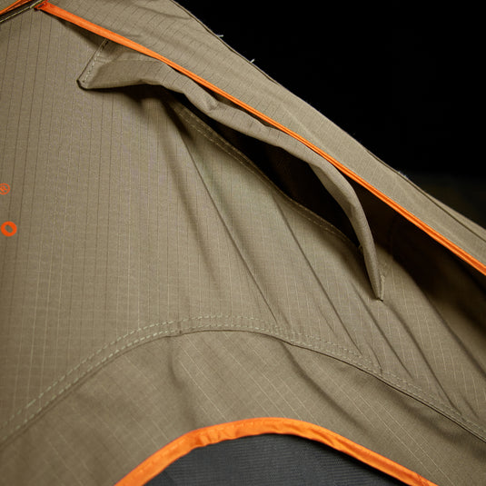 - Exceptional ventilation with zippered sky window, built-in air vents and three full-width doors