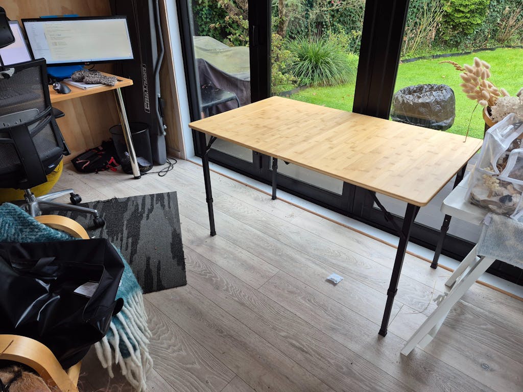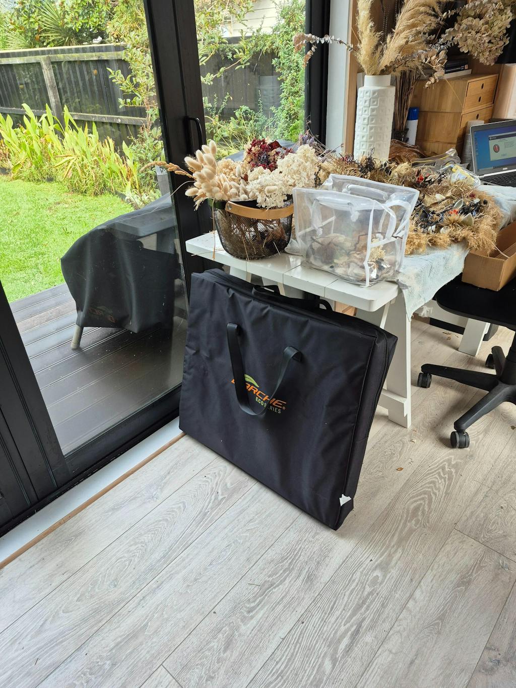 The 120cm table is perfect to seat 4 to 6 people. This bi-fold table packs down quickly into a flat shape for easy storing.